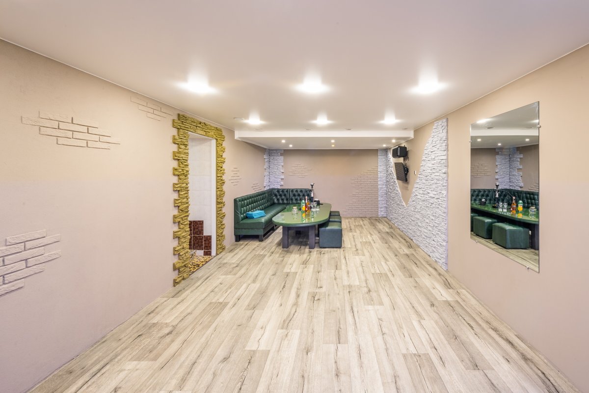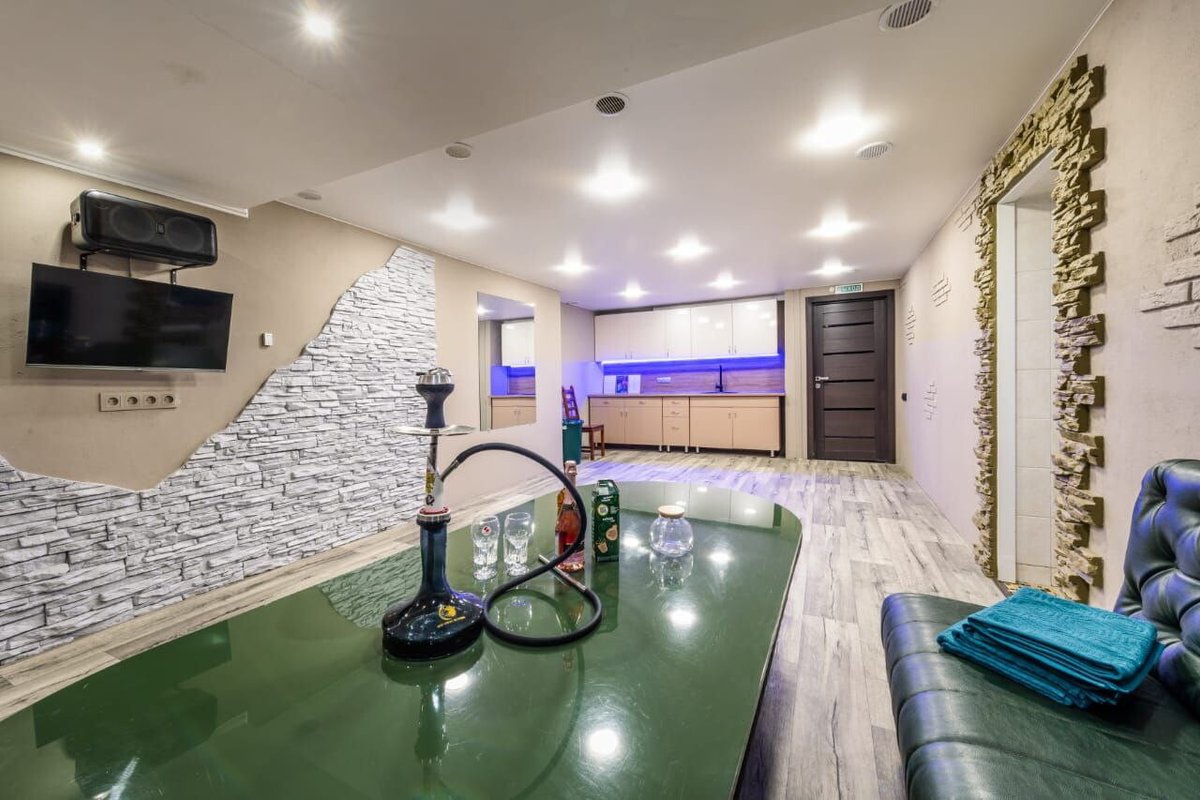 Не хочется в бассейн? Не беда! Вместо этого можно передохнуть в нашей комнате отдыха. Мы постарались создать здесь комфортный, стильный интерьер из максимально натуральных, безопасных материалов, подобрать мебель, которая будет одновременно удобной и эстетичной. Надеемся, что вам понравится! Для создания настроения мы можем предложить вам бильярд, кальян и караоке. Также у нас работает бар, а если нужно, вы можете принести и собственную еду - мы не возражаем! Главное помните, что плотная трапеза незадолго перед посещением парной - это не самая хорошая идея, согласно мнению терапевтов. А вот после парной она совсем не повредит!